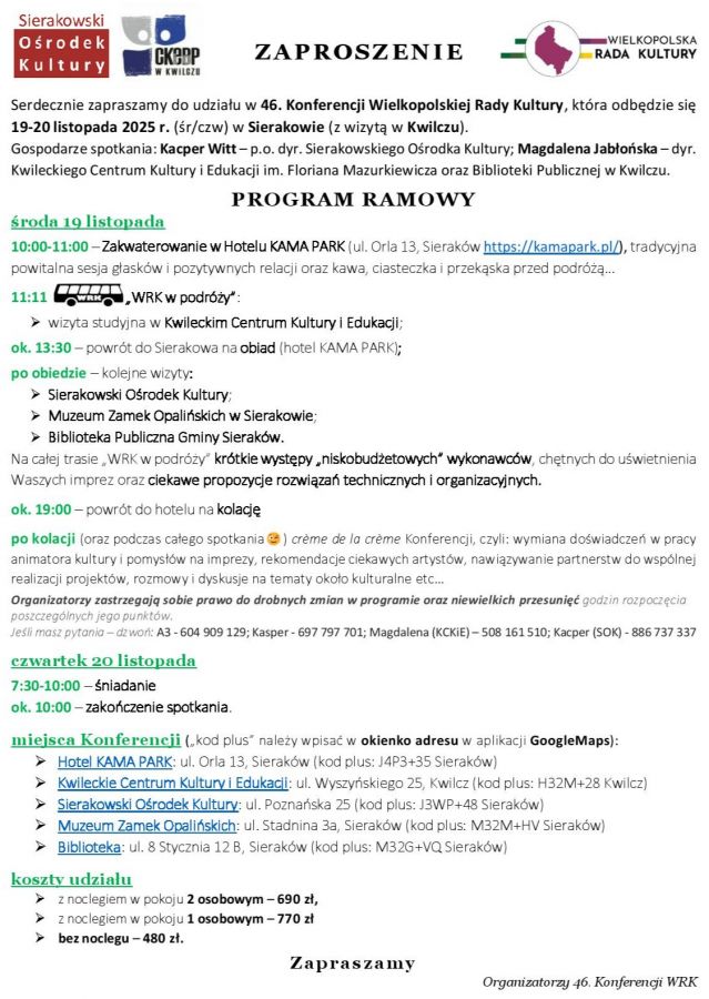 Gospodarze: Kwileckie Centrum Kultury i Edukacji, dyr. Magdalena Jabłońska oraz Sierakowski Ośrodek Kultury, p.o. dyr. Kacper Witt.